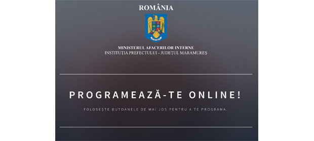 Pentru a evita aglomerația la ghișee, începând cu data de 12 februarie 2017, programările la Serviciul Permise și Înmatriculări se fac exclusiv online, la adresa www.programari.prefecturamaramures.ro. De asemenea, la aceeași adresă se fac programări online și la Serviciul Pașapoarte.