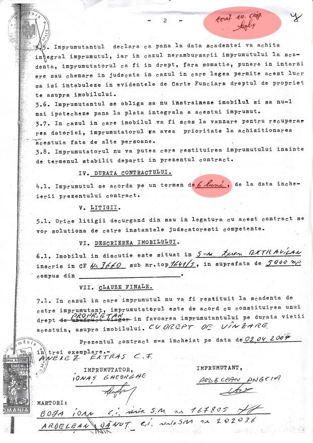Contractul cica este datat in 02.04.2005, data la care Ionas Gheorghe si Danut Ardelean nici macar nu se cunosteau, dupa cum ne-au declarat cei doi, in cadrul documentarii noastre.