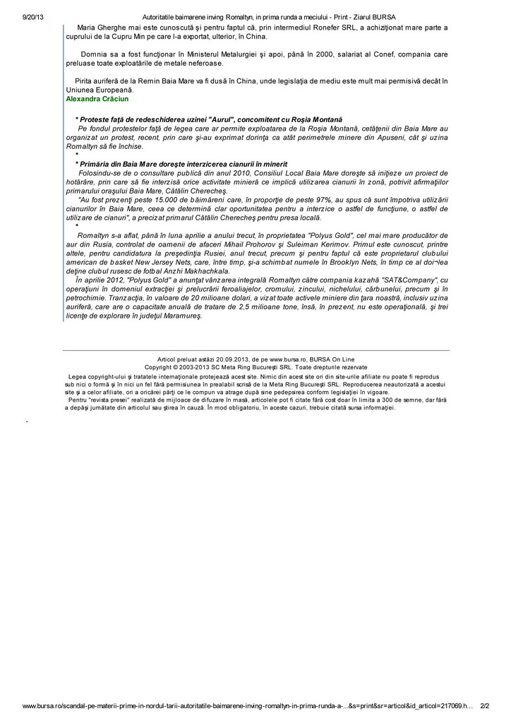 In cel de-al saptelea aliniat, de sus in jos, din materialul numit „Autoritatile baimarene inving Romaltyn, in prima runda a meciului”, jurnalista Alexandra Craciun da cu bota-n balta.