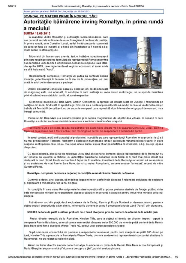 Nu mai este o noutate faptul ca in procesul intentat de societatea Romaltyn impotriva Consiliului Local Baia Mare s-a incheiat deja prima batalie, ca pana se va incheia razboiul e deja cale lunga.