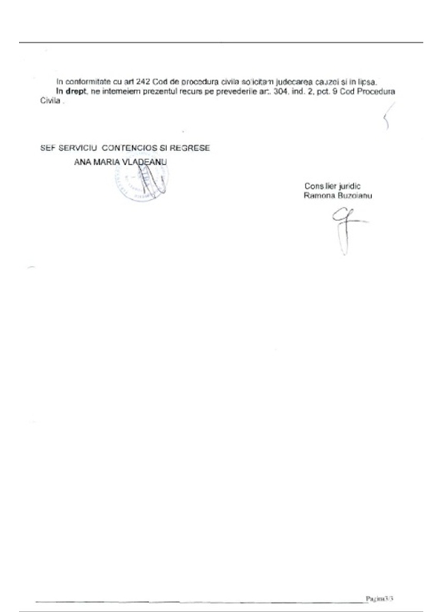 Pentru a lamuri anumite aspecte ale acestui proces, am expediat si o Scrisoare de Intampinare Presedintelui Completului de Judecata (cu confirmare de primire) dar si depusa, direct in Dosarul cu pricina la Tribunalul Bucuresti (care a fost inregistrata la Tribunalul Bucuresti pe data de 12 decembrie 2013 cu referinta : 38718/3/2013):