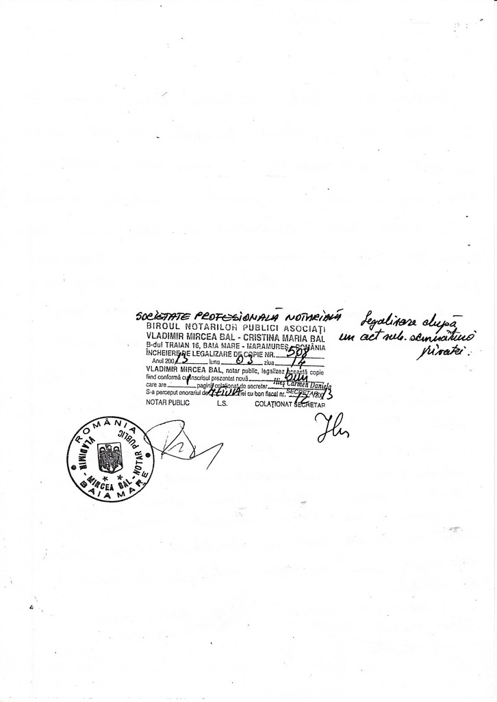 Altfel spus, Teo a dus o hartie oarecare, notarul Bal s-a hamesit sa incaseze enorma suma de 4 + TVA, din cate rezulta din legalizarea de pe verso, si astfel rastignirea lui Tarta era deja… rezolvata.