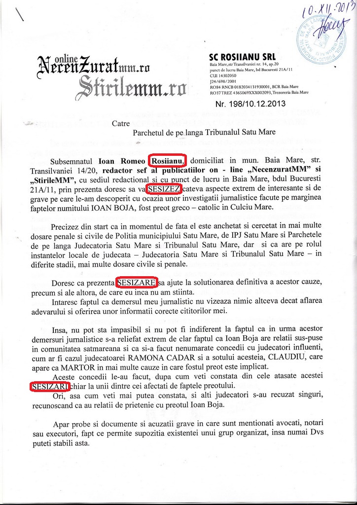 Redactia noastra a SESIZAT neregulile la DIICOT, IPJ Satu Mare si Parchetul de pe langa Tribunalul Satu Mare