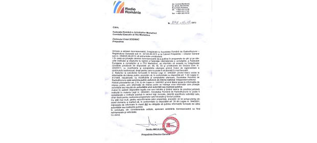 “Prin cererea înregistrată de pârâtă sub nr. 321/25.06.2013, reclamanta Federaţia Română a Jurnaliştilor MediaSind a solicitat pârâtei Societatea Română de Radiodifuziune să comunice următoarele informaţii: