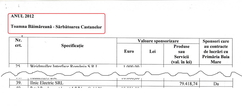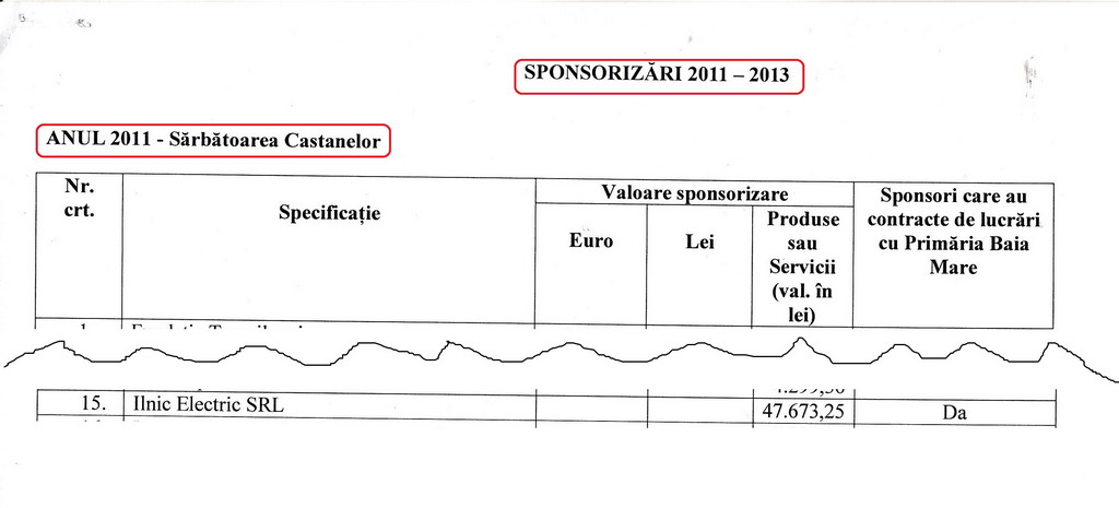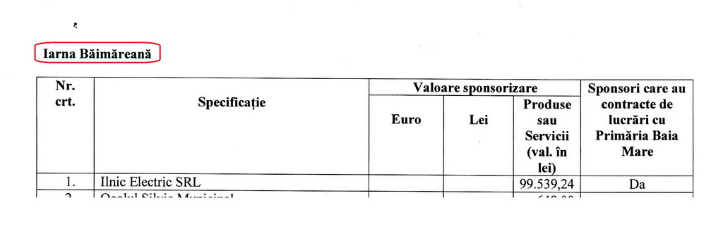 Oricum ar fi, la numai cateva luni distanta, la „Iarna baimareana” din 2011, SC ILNIC ELECTRIC SRL a sponsorizat iar Primaria cu suma de 99.539,24 lei.