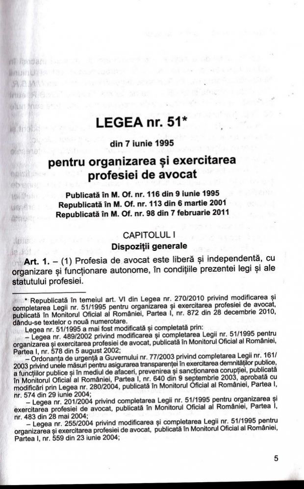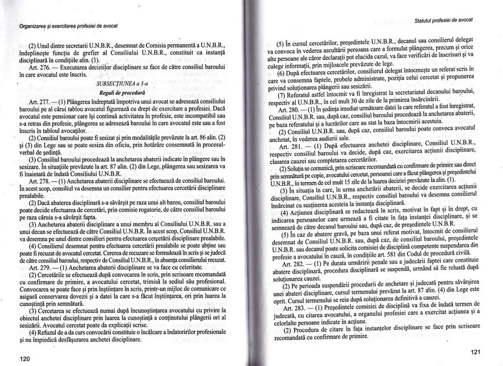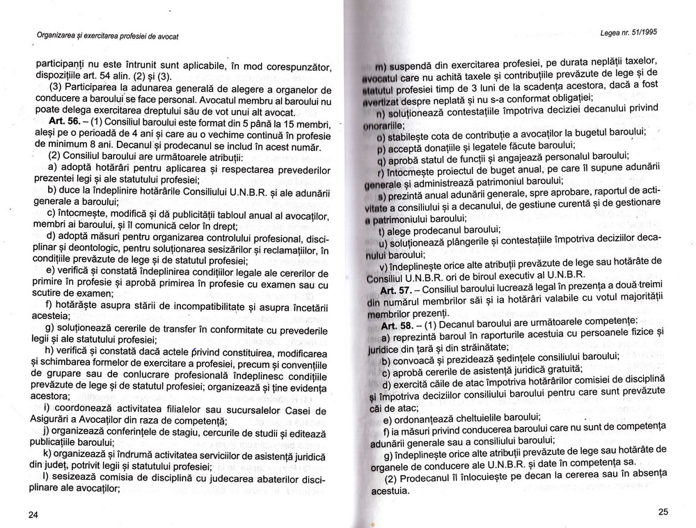 Spre o corecta informare, urmare articolului publicat de dvs., "Despre coruptie si incalcarea legii in Baroul Maramures", anexez, in attach, prevederile Legii 51/1995 pentru organizarea si exercitarea profesiei de avocat, dar si ale Statutului, privind regulile de procedura si competenta solutionare a plangerilor.