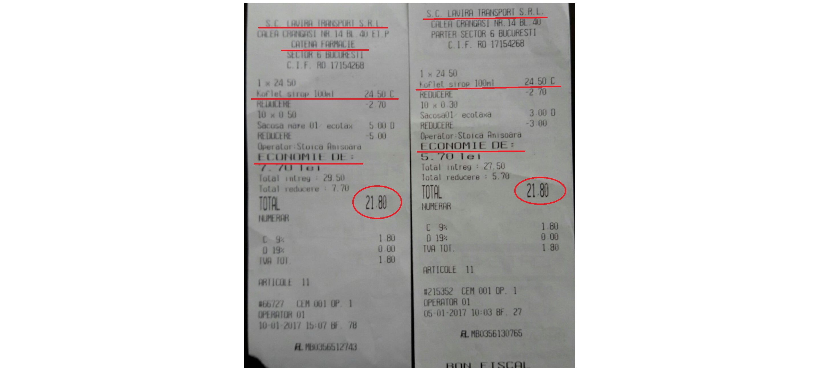 În urma acestei cercetări, APC a constatat o practică “interesantă” a lanțului de farmacii CATENA. Aceasta introduce pe bonul fiscal un număr de 10 sacoșe mici sau mari cu o anumită valoare, fara sa fi fost solicitate de consumator sau justificate de numărul produselor cumpărate. Sacosele sunt evidențiate pe bon ca reducere, creând impresia unei economii consistente pentru consumator la achiziționarea medicamentelor.