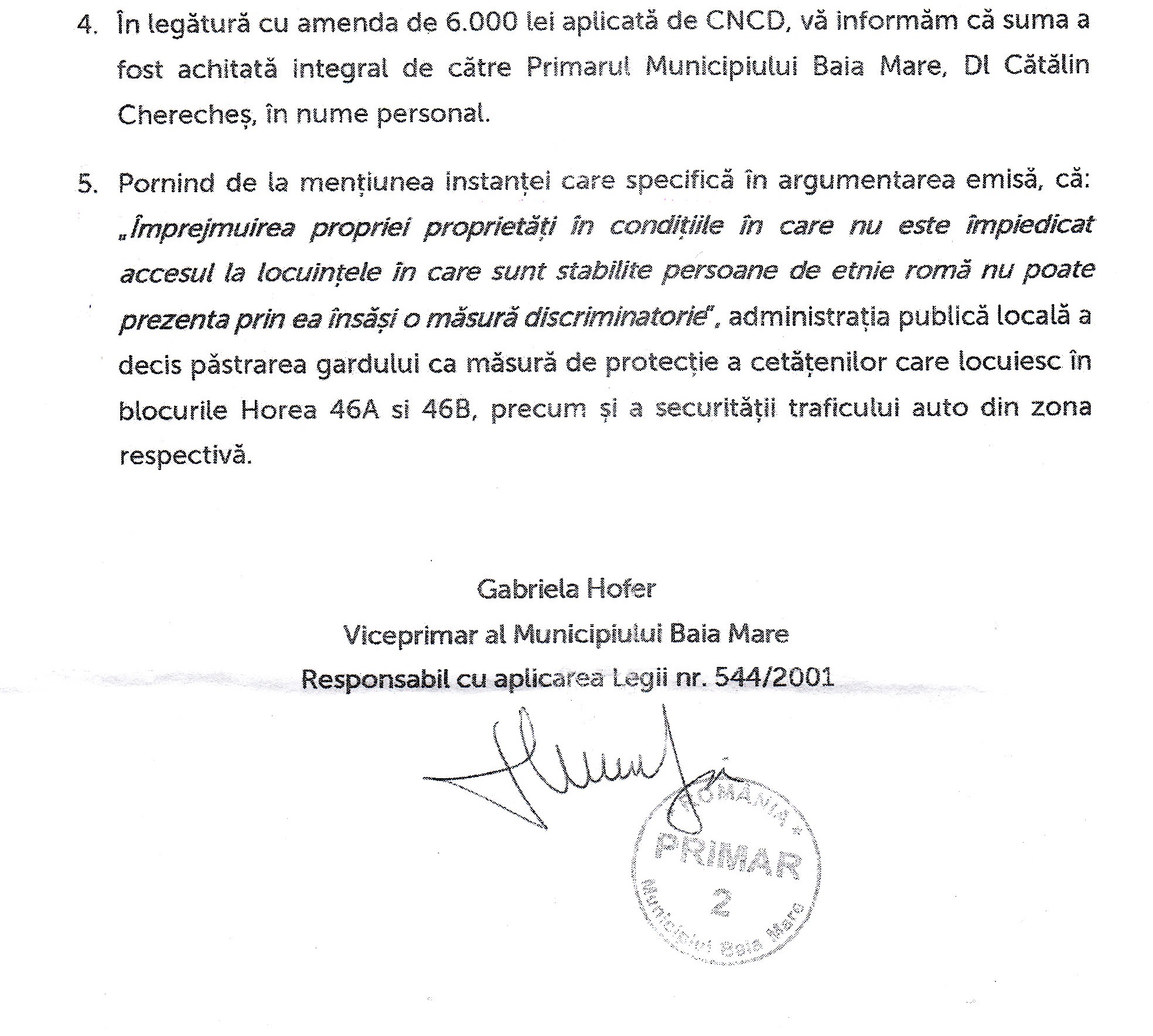 La vremea aceea am fost singurii care am sustinut ca al nostru primar cu muschi a pus-o de-o discriminare cand a facut zidul cu pricina.