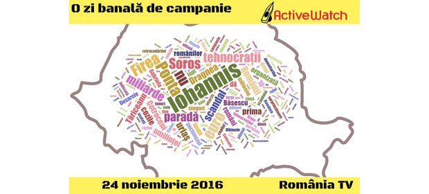 ActiveWatch, în calitatea sa de organizație care apără dreptul la libertatea de exprimare și informare corectă, face un apel către membrii Consiliului Național al Audiovizualului să ia măsuri urgente și ferme față de maniera în care postul România TV a ales să mediatizeze desfășurarea campaniei electorale pentru alegerile parlamentare din 11 decembrie 2016.