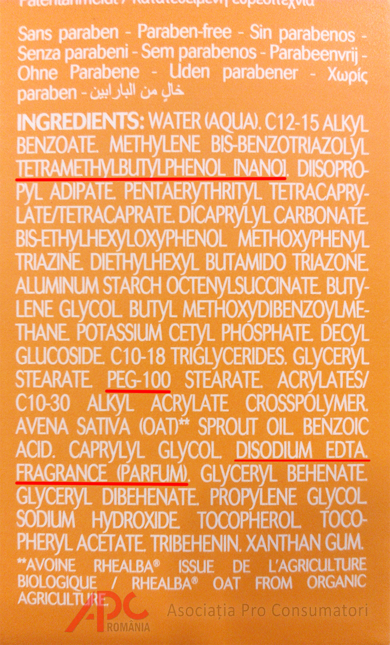 „Din păcate, alegerea unei creme de protecție solară pentru copii, de către cei mai mulți părinți, se face având în vedere doar prețul și reclama făcută produsului respectiv pe posturile de televiziune. Cei care procedează în acest mod nu fac altceva decât să-și expună în mod constant copiii unor combinații de substanțe chimice care pe termen mediu vor genera afecțiuni medicale pentru a căror tratare/ameliorare se vor cheltui sume mari de bani. De aceea, pentru a nu pune în pericol viața copiilor voștri, vă recomand să NU cumpărați acele creme care conțin parabeni/conservanți, alcool etilic, ftalați, formaldehyde, silicon, nanoparticule de silică, nanoparticule de dioxid de titan, nanoparticule de tetramethylbutylphenol, coloranți sintetici, sodium lauryl sulfate (SLS), polietilen glicol (PEG-uri), fenoxietanol, uleiuri minerale, benzophenone-3, nickel, alergeni cunoscuți, parafine, parfum sintetic. Având în vedere compoziția chimică a unor astfel de produse, ne exprimăm temerea în legătură cu potențialul cancerigen, mutagen sau toxic al unor ingrediente, care creează o lipsă de siguranță pentru consumatori. Dacă luăm în calcul denumirea „parfum” acesta poate avea peste 200 de ingrediente în compoziția lui. Cele mai multe produse indică doar cuvântul parfum în lista ingredientelor. Câteva dintre problemele pe care le cauzează aceste parfumuri sunt: migrenele, amețeală, iritații ale pielii, hiperpigmentare, tuse violentă, vomă. Acesta este motivul pentru care sfătuim consumatorii să evite produsele destinate copiilor care conțin parfumuri și facem un apel către instituțiile statului să verifice modul în care producătorii respectă legislația în vigoare. Faptul că suntem atenționați de către unii producători asupra acestui lucru, dovedește că unele ingrediente din compoziția chimică a acestor produse pot provoca anumite afecțiuni medicale copiilor voștri. Având în vedere că în acest tip de produs predomină ingredientele de natură chimică, consumatorii trebuie să se informeze în prealabil la medicul pediatru/dermatolog. Totodată, vă recomand să nu cumpărați acele creme de protecție solară care nu au informații suficiente/clare referitoare la data de expirare și al căror tub nu prezintă un sigiliu, care, de fapt, oferă siguranță în privința necontaminării conținutului produsului respectiv. Termenul de valabilitate al produsului trebuie întotdeauna să fie un criteriu important în alegerea produsului. Nu vă lăsați păcăliți de anumite mențiuni, cum ar fi: cea mai bună cremă pentru copii, dezvoltată împreună cu medicii pediatri, recomandări ale asociațiilor profesionale etc, care apar pe ambalajul unor creme și uleiuri de protecție solară, acestea sunt folosite numai în scop de marketing pentru a vă convinge să cumpărați acele produse.” Conf. univ. dr. Costel Stanciu, președinte Asociația Pro Consumatori.