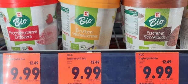 Reprezentanţii APC au descoperit două mărci de îngheţată, arctic100, respectiv KBio, la care preţul de la casă este mai mare faţă de cel de la raft cu 7,50 lei, respectiv 2,50 lei.