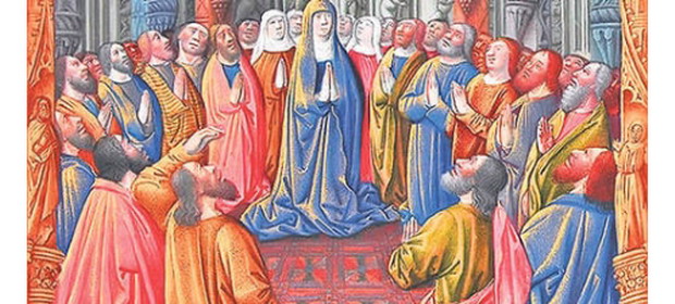 În cea de-a opta duminică după Paşti, pe când Apostolii şi alţi ucenici ai Domnului Iisus Hristos se rugau împreună, a pogorât peste ei Duhul Sfânt, sub forma unor "limbi de foc despicate".